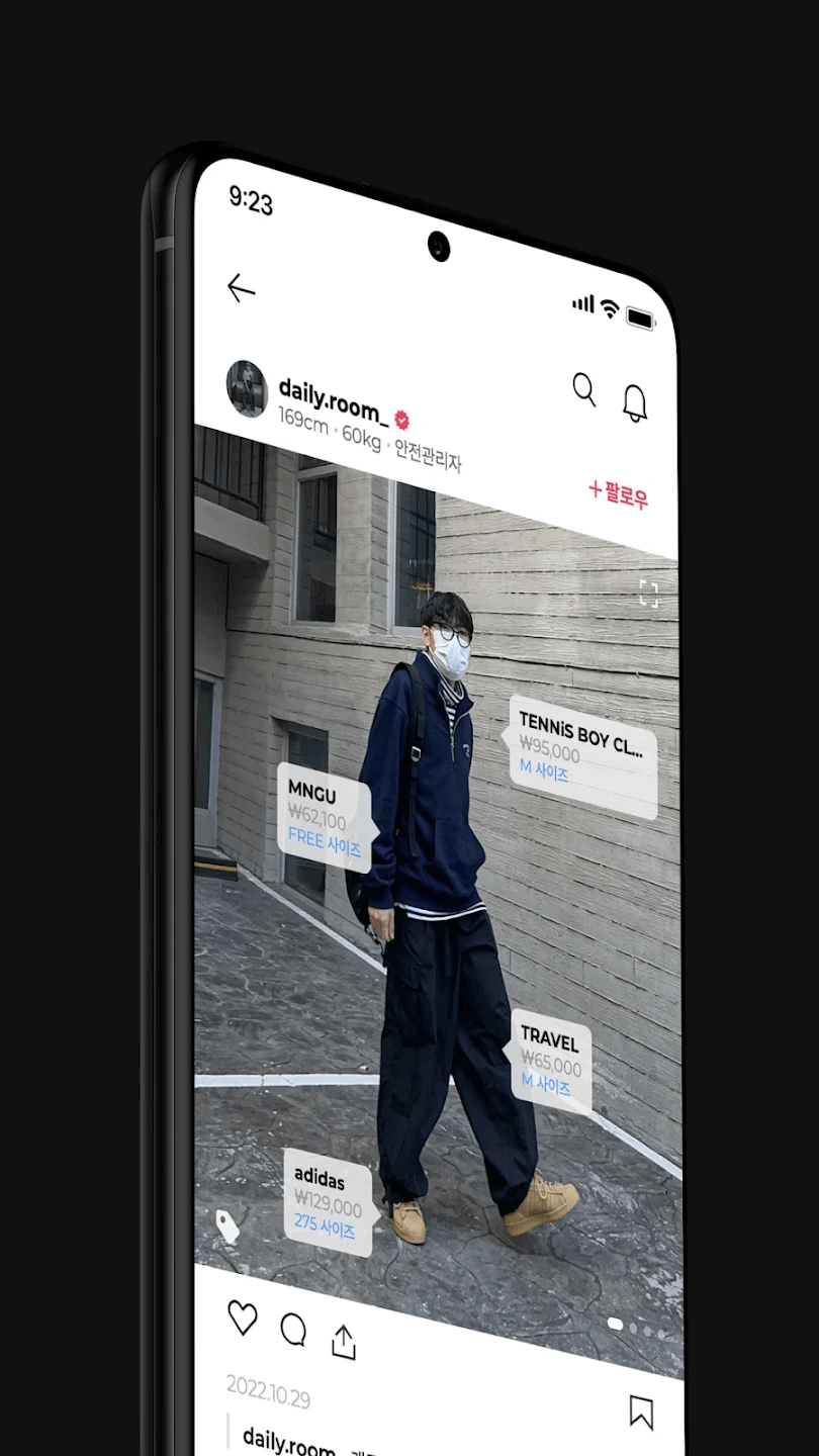 - 디테일인 제품정보 : 매력적인 데일리룩뿐만 아니라 해당 룩에 등장하는 각 아이템의 필수 디테일도 함께 보여줍니다. 클릭 한 번으로 각 제품의 구매처를 찾을 수 있습니다. 손끝하나로 편리하게 확인해 보세요.