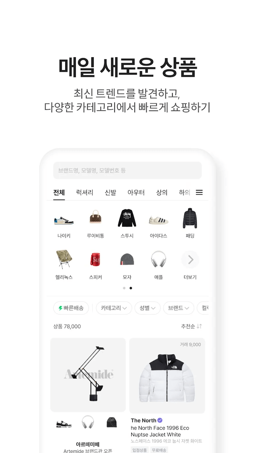- 기본 혜택 : KREAM을 사용하면 빠른 배송과 신뢰성을 기대할 수 있습니다. '빠른 배송'이 표시된 상품을 오늘 결제한다면 내일 이면 상품을 문 앞에서 받아볼 수 있습니다. 그렇게 간단해요!